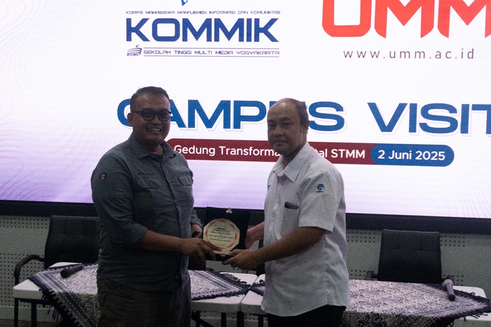 Yogyakarta, 2 Juni 2025 – Universitas Muhammadiyah Malang (UMM) melaksanakan kunjungan akademik ke Sekolah Tinggi Multi Media (STMM) pada Senin (2/6). Rombongan UMM terdiri dari 50 peserta, termasuk dosen, mahasiswa, dan pimpinan fakultas, disambut secara resmi di Gedung Transformasi Digital STMM oleh pimpinan dan jajaran pengurus Korps Mahasiswa Manajemen Informasi Komunikasi (KOMMIK).Kegiatan diawali dengan sesi penyambutan dan presentasi mengenai program studi, sistem pembelajaran, serta fasilitas penunjang pendidikan yang dimiliki STMM. Selanjutnya, dilakukan diskusi akademik yang membahas peluang kolaborasi antara kedua perguruan tinggi, khususnya dalam bidang pendidikan, teknologi media, dan komunikasi digital.
